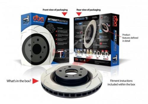 Street Series T2 Slot Design - sportovní kotouče určené pro běžné použití tedy denní ježdění. Řada kotoučů Street Series T2 je určena pro běžné použití u osobních automobilů běžných výkonů. Jsou doporučené pro uživatele, hledající kvalitnější a vzhlednější kotouče než jsou sériové. Tato řada se vyznačuje patentovaným chlazením "Kangaroo paw", bi-symetrickými T2 drážkami snižující vibrace a hluk, což má za následek tišší, vnímavější a hladší odezvu od brzdového pedálu. Design T2 drážek poskytuje rovnoměrné opotřebení destiček a minimalizuje pravděpodobnost vytvrdnutí povrchu. Kotouče jsou také opatřeny černým nátěrem pro prodloužení životnosti.