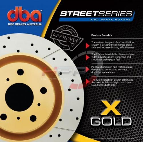 Street Series X-GOLD cross-drilled - sportovní kotouče pro běžné použití. Řada kotoučů Street Series X-GOLD je určena pro běžné použití u osobních automobilů s běžným výkonem. Jsou doporučené pro uživatele, hledající kvalitnější a vzhlednější kotouče oproti sériovým. Tato řada se vyznačuje patentovaným chlazením "Kangaroo paw", designem X-GOLD cross-drilled zvyšující jistotu a účinnost brzdné síly. Kotouče jsou také opatřeny černým nátěrem pro prodloužení životnosti.