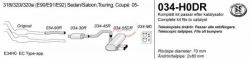Catback výfuk Simons BMW 3-Series E90 / E91 / E92 / E93 318i/320i/320si (05-12). Kompletní výfukový systém od katalyzátoru.