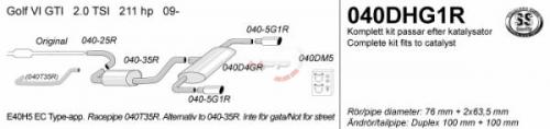 Catback výfuk Simons VW Golf 6 GTi 2.0TSi 211PS (09-12). Kompletní výfukový systém od katalyzátoru.