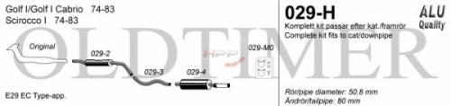 Catback výfuk Simons VW Scirocco I (74-83). Kompletní výfukový systém od katalyzátoru.