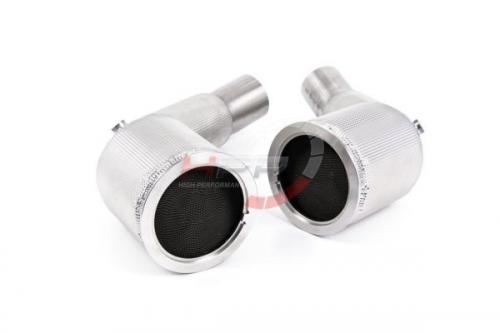 Downpipes se sportovními katalyzátory Milltek Sport Audi RS7 C8 4.0 V8 Bi-Turbo (19-). Sportovní 200 celové katalyzátory včetně downpipes (první díly výfuku). Nahrazují sériové primární katalyzátory vysoce propustnými sportovními. Downpipes jsou obalené speciálním tepelným štítem.