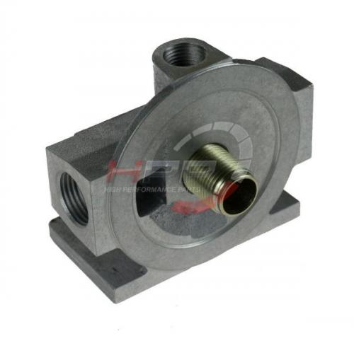 Externí relokační držák olejového filtru Mocal - 1x vývod 1/2"-BSP na každé straně + 5/8"-BSP čidlo. Směr toku z leva do prava.