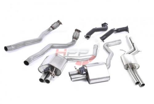 Kompletní výfukový systém Milltek Sports Audi RS7 Sportback 4.0 V8 TFSI Bi-turbo (13-). Kompletní výfukový systém včetně sportovních 100 celových katalyzátorů a downpipes (první díly výfuku). Nahrazují sériové primární katalyzátory plně průchozími náhradami a sekundární katalyzátory vysoce propustnými sportovními. Downpipes jsou potaženy speciální tepelnou povrchovou úpravou. Určeno pro hodně upravená vozidla.