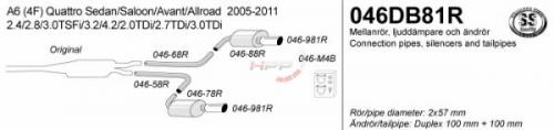 Koncové tlumiče výfuku Simons Audi A6 4F Quattro 2.4/2.8/ 3.0TSFi/3.2/4.2/ 2.0TDi/2.7TDi/3.0TDi (05-11). Kompletní výfukový systém od středového dílu.
