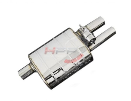 Univerzální koncový tlumič výfuku vyrobený kompletně z nerezové oceli T304 s integrovanou výfukovou klapkou. Klapka je ovládána elektronicky pomocí dálkového ovládání. Jednotku s ovládáním je nutné dokoupit zvlášť. Napájení je řešeno na 12V přes cigaretový zapalovač nebo zapojením přes spínací skříňku. Výfuk je určený pro jízdu s otevřenou klapkou, při zavření dochází k nárůstu protitlaku, musí být tedy brán zřetel na dávkování výkonu, což platí zejména u turbo motorů.
