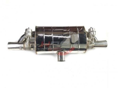 Univerzální koncový tlumič výfuku vyrobený kompletně z nerezové oceli T304 s integrovanými podtlakovými výfukovými klapkami. Klapky jsou ovládány podtlakově. Ovládací jednotka má výstup na podtlak.