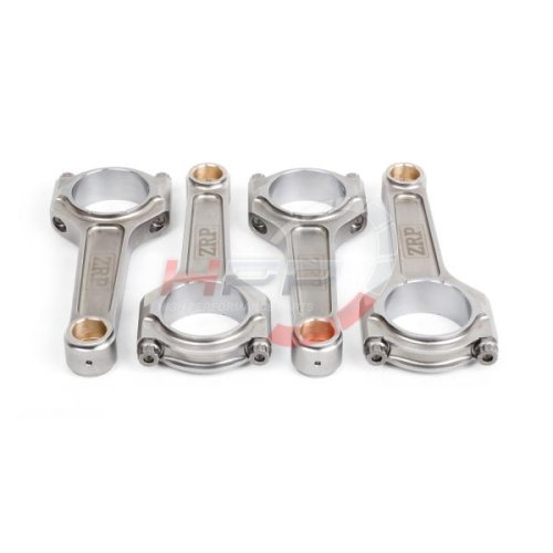 Kované ojnice od firmy ZRP se vyznačují perfektní kvalitou a přesností. Ojnice procházejí dodatečnými obráběcími procesy. Postranní žebrování minimalizuje kroucení ojnice a také redukuje její váhu. Pouzdra disponují radiální drážkou a jsou vyrobena ze slitin hliníku, bronzu a silikonu. Spojovací rukávy zaručují perfektní přesnost při montáži a opětovné použití. Drážkování v opěrných bodech poskytuje redukci váhy. Ojnice procházejí několika technickými kroky. Brokování zaručuje delší životnost. Magnaflux zaručuje kontrolu konzistence kovaného materiálu, který musí splňovat vysoký standard. Několika stupňový žárovací proces zaručuje vysokou pevnost, rozměrovou stálost a eliminuje únavu materiálu. Obrábění na CNC strojích zaručuje vynikající toleranci a přesnost 0.0003". Optimální vyvážení celé sady (+/- 1g). Přesnost osové vzdálenosti s tolerancí 001". Počítačová analýza Finite Element Analysis (FEA) odhaluje možné napětí. Šrouby ARP 2000 jsou rezistentní do upínací síly až 220.000psi, ARP L-19 pak až do síly 260.000/270.000psi. Kombinované testy prokázaly výdrž ojnic přes 700PS+ s použitím šroubů ARP 2000, se šrouby L-19 přes 800PS+ u 4-válcového motoru a 1000PS+ u 6-válcového motoru. Ojnice jsou dodávány s lubrikantem ARP moly a montážními instrukcemi.
