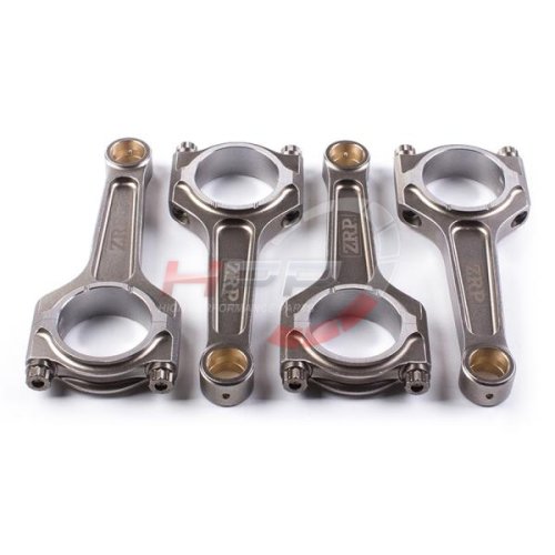 Kované ojnice od firmy ZRP se vyznačují perfektní kvalitou a přesností. Ojnice procházejí dodatečnými obráběcími procesy. Postranní žebrování minimalizuje kroucení ojnice a také redukuje její váhu. Pouzdra disponují radiální drážkou a jsou vyrobena ze slitin hliníku, bronzu a silikonu. Spojovací rukávy zaručují perfektní přesnost při montáži a opětovné použití. Drážkování v opěrných bodech poskytuje redukci váhy. Ojnice procházejí několika technickými kroky. Brokování zaručuje delší životnost. Magnaflux zaručuje kontrolu konzistence kovaného materiálu, který musí splňovat vysoký standard. Několika stupňový žárovací proces zaručuje vysokou pevnost, rozměrovou stálost a eliminuje únavu materiálu. Obrábění na CNC strojích zaručuje vynikající toleranci a přesnost 0.0003". Optimální vyvážení celé sady (+/- 1g). Přesnost osové vzdálenosti s tolerancí 001". Počítačová analýza Finite Element Analysis (FEA) odhaluje možné napětí. Šrouby ARP 2000 jsou rezistentní do upínací síly až 220.000psi, ARP L-19 pak až do síly 260.000/270.000psi. Kombinované testy prokázaly výdrž ojnic přes 700PS+ s použitím šroubů ARP 2000, se šrouby L-19 přes 800PS+ u 4-válcového motoru a 1000PS+ u 6-válcového motoru. Ojnice jsou dodávány s lubrikantem ARP moly a montážními instrukcemi.