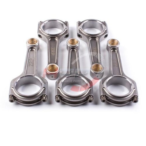 Kované ojnice od firmy ZRP se vyznačují perfektní kvalitou a přesností. Ojnice procházejí dodatečnými obráběcími procesy. Postranní žebrování minimalizuje kroucení ojnice a také redukuje její váhu. Pouzdra disponují radiální drážkou a jsou vyrobena ze slitin hliníku, bronzu a silikonu. Spojovací rukávy zaručují perfektní přesnost při montáži a opětovné použití. Drážkování v opěrných bodech poskytuje redukci váhy. Ojnice procházejí několika technickými kroky. Brokování zaručuje delší životnost. Magnaflux zaručuje kontrolu konzistence kovaného materiálu, který musí splňovat vysoký standard. Několika stupňový žárovací proces zaručuje vysokou pevnost, rozměrovou stálost a eliminuje únavu materiálu. Obrábění na CNC strojích zaručuje vynikající toleranci a přesnost 0.0003". Optimální vyvážení celé sady (+/- 1g). Přesnost osové vzdálenosti s tolerancí 001". Počítačová analýza Finite Element Analysis (FEA) odhaluje možné napětí. Šrouby ARP 2000 jsou rezistentní do upínací síly až 220.000psi, ARP L-19 pak až do síly 260.000/270.000psi. Kombinované testy prokázaly výdrž ojnic přes 700PS+ s použitím šroubů ARP 2000, se šrouby L-19 přes 800PS+ u 4-válcového motoru a 1000PS+ u 6-válcového motoru. Ojnice jsou dodávány s lubrikantem ARP moly a montážními instrukcemi.