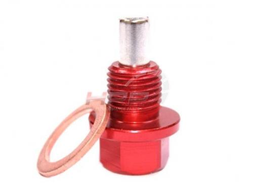 Magnetický výpustný šroub obsahuje magnet, který zachycuje abrazivní železitý materiál, jenž může cirkulovat uvnitř motoru běžným používáním a poškodit ho tak. Vyrobený z pevné slitiny hliníku. Eloxovaný pro maximální odolnost. Nekoroduje. Lze opakovaně použít. Mnohem lehčí než sériový ocelový šroub. Součástí balení je těsnící o-kroužek.