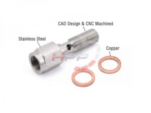 - Precizně zpracovaná fitinka pro brzdovou soustavu z nerezového oceli SUS303.
