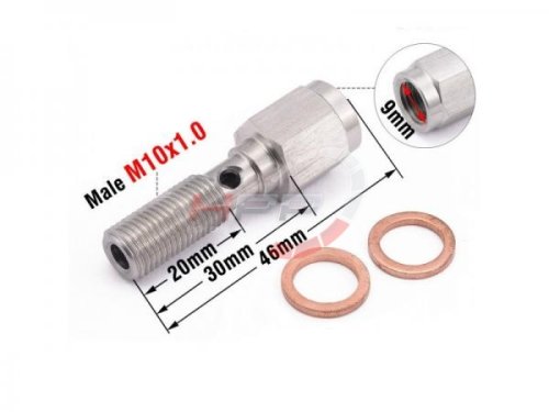 Průtokový šroub na banjo M10 x 1,0 - délka 30mm - nerezový - Závit samec M10 x 1,0 konkávní.