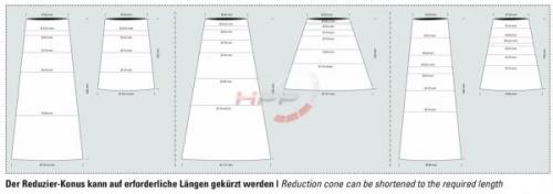 - Redukce může být libovolně zkrácena a tím lze dosáhnout požadovaného průměru v uvedeném rozmezí.