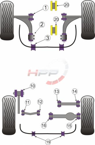 Silentbloky používané k uložení podvozkových částí patří k nejnamáhanějším částem, použitým na automobilu. Podstupují enormní zatížení a nárazy a ve většině případů bez jakékoli údržby. Běžné silentbloky jsou vyráběné z gumových směsí, obsahujících přírodní produkty. Takový materiál podléhá stárnutí, měkne a stává se příliš poddajným. Přestává odolávat silám na něj vynakládaným a tudíž dovoluje pohyb jednotlivých částí podvozku. Výsledkem je obtížně seřiditelná geometrie vozidla, zvýšené opotřebení pneumatik, snížená stabilita při brždění a špatná ovladatelnost vozu. Tvrdé materiály používané dříve k závodním účelům způsobovaly nepříjemný hluk a opotřebení dalších částí vozu. Powerflex však již několik let nabízí fantastickou náhradu! Tou jsou polyuretanové silentbloky. Díky vědecky vyvinuté polyuretanové směsi a jejím technologickým výhodám, jsou silentbloky Powerflex o 30% tvrdší než nové originální gumové silentbloky, zároveň ale absorbují stejné množství hluku. Díky možnosti vyměnit některé silentbloky navíc ušetříte, protože nebudete muset měnit celé rameno nebo jiný díl. Powerflex – to je delší životnost pneumatik, lepší ovladatelnost a větší bezpečnost!