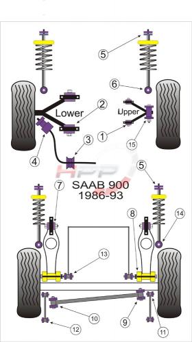 Silentbloky Powerflex Saab 96 (60-79) Front Lower Shock M...