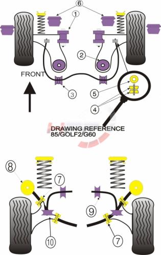 Silentbloky Powerflex VW Golf 2 4WD vč. G60/Rallye/Countr...