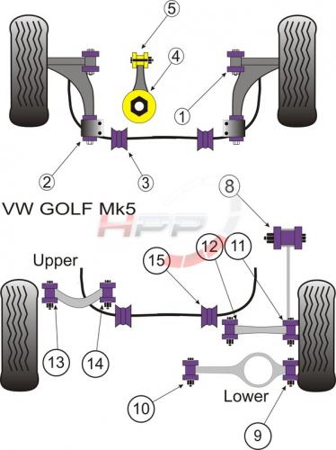 Silentbloky Powerflex VW Golf 5 1K včetně GTI/R32 (04-08)...