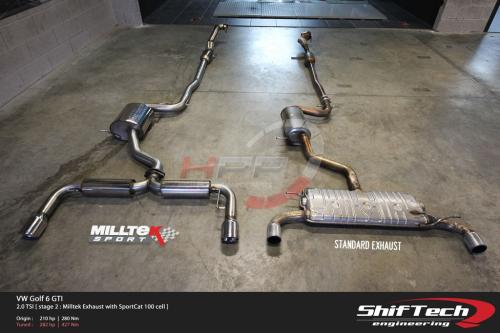 Turboback výfuk Milltek Sport VW Golf 6 GTi 2.0 TFSI 210PS (09-13). Kompletní výfukový systém od turba včetně sportovního 200 celového hi-flow katalyzátoru od firmy HJS.