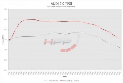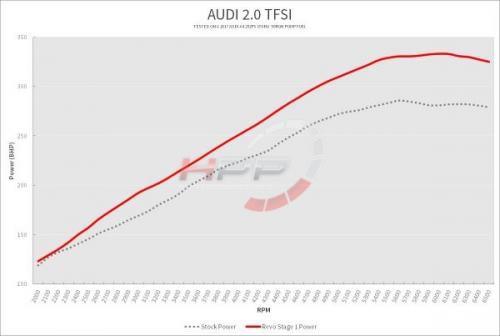 - Inovativní motor 2.0TFSI umí být vcelku úsporný, ale když je potřeba, dodává velmi pěkný výkon v celém spektru otáček. Software Revo umožňuje těmto motorům dodatečný výkon a širší výkonové pásmo, aniž by ztrácel hladký chod nebo se zhoršila spotřeba. Zvýšení točivého momentu v celém rozsahu otáček poskytuje mnohem větší flexibilitu ve všech převodových stupních. Někteří zákazníci zaznamenali snížení spotřeby až o 10% po této úpravě.
