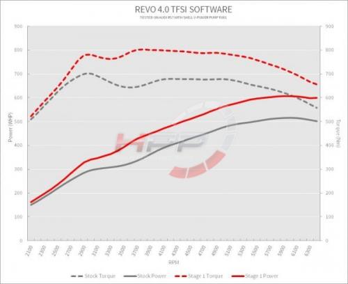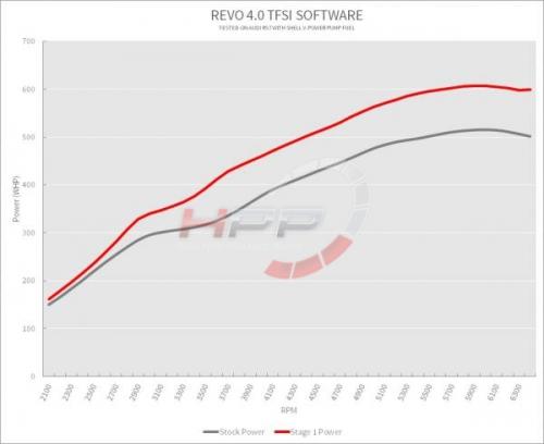 - Osvědčený motor 4.0TFSI byl vyvinut ve spolupráci s automobilkou Bentley a díky vrtání 84,5 mm a zdvihu 89 mm disponuje objemem 3993 cm3. Má klasické rozevření motorů V8, tedy válce svírají úhel 90stupňů a navíc je přeplňován dvojicí Twin-scroll turbodmychadel. Software Revo umožňuje těmto motorům dodatečný výkon a širší výkonové pásmo, aniž by ztrácel hladký chod nebo se zhoršila spotřeba. Zvýšení točivého momentu v celém rozsahu otáček poskytuje mnohem větší flexibilitu ve všech převodových stupních. Někteří zákazníci zaznamenali snížení spotřeby až o 10% po této úpravě.