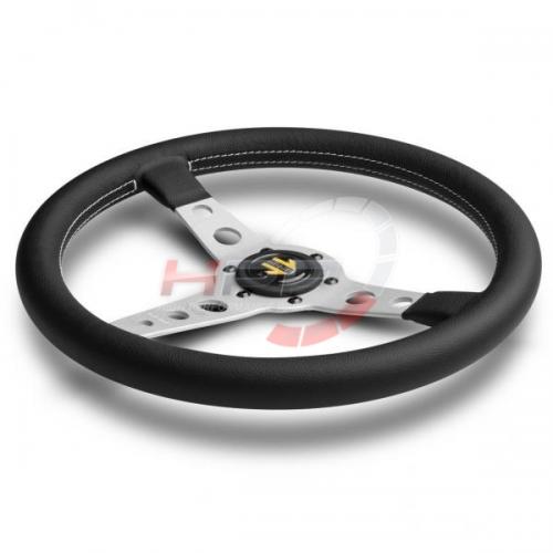 Volant Momo Prototipo - černý/stříbrný - kůže. Průměr 350mm.