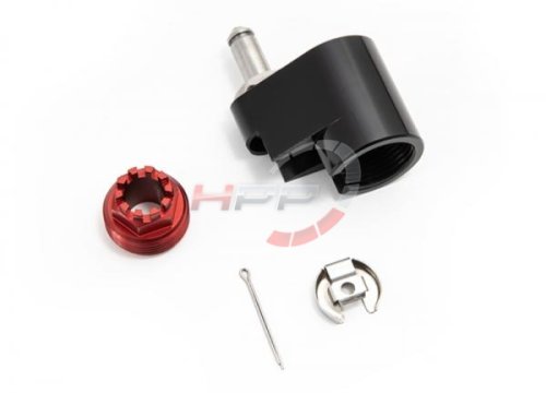 - Těleso řazení je vyrobeno ze slitiny hliníku 6082 s černým eloxováním a zajišťovací matice s červeným eloxováním pro maximální životnost. Čep řazení je vyrobený z nerezové oceli a perfektně zapadá do táhla řazení.
