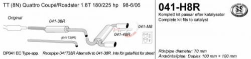 Catback výfuk Simons Audi TT 8N Quattro 1.8T 180/225PS (98-06). Kompletní výfukový systém od katalyzátoru.
