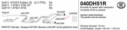 Catback výfuk Simons VW Golf 6 1.4TSi/1.8TSi (08-13). Kompletní výfukový systém od katalyzátoru.