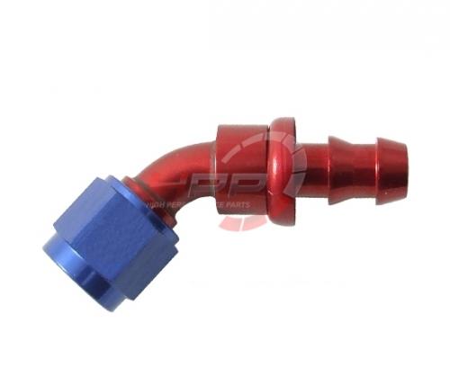 Fitinka koleno 45° DASH-12 (AN12) s výstupem na hadici. Závit 1-1/16"x12-UNF. Lze použít na jakoukoliv hadici, která lze stáhnout hadicovou sponou.