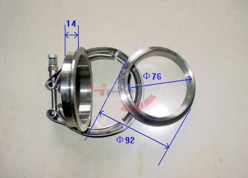 V-band set 76mm (3 palce) - 1x spona + 2x příruby - nerez.