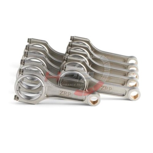 Kované ojnice od firmy ZRP se vyznačují perfektní kvalitou a přesností. Ojnice procházejí dodatečnými obráběcími procesy. Postranní žebrování minimalizuje kroucení ojnice a také redukuje její váhu. Pouzdra disponují radiální drážkou a jsou vyrobena ze slitin hliníku, bronzu a silikonu. Spojovací rukávy zaručují perfektní přesnost při montáži a opětovné použití. Drážkování v opěrných bodech poskytuje redukci váhy. Ojnice procházejí několika technickými kroky. Brokování zaručuje delší životnost. Magnaflux zaručuje kontrolu konzistence kovaného materiálu, který musí splňovat vysoký standard. Několika stupňový žárovací proces zaručuje vysokou pevnost, rozměrovou stálost a eliminuje únavu materiálu. Obrábění na CNC strojích zaručuje vynikající toleranci a přesnost 0.0003". Optimální vyvážení celé sady (+/- 1g). Přesnost osové vzdálenosti s tolerancí 001". Počítačová analýza Finite Element Analysis (FEA) odhaluje možné napětí. Šrouby ARP 2000 jsou rezistentní do upínací síly až 220.000psi, ARP L-19 pak až do síly 260.000/270.000psi. Kombinované testy prokázaly výdrž ojnic přes 700PS+ s použitím šroubů ARP 2000, se šrouby L-19 přes 800PS+ u 4-válcového motoru a 1000PS+ u 6-válcového motoru. Ojnice jsou dodávány s lubrikantem ARP moly a montážními instrukcemi.