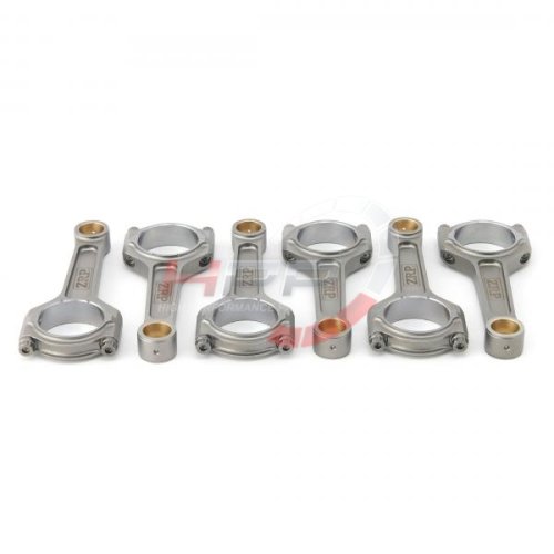 Kované ojnice od firmy ZRP se vyznačují perfektní kvalitou a přesností. Ojnice procházejí dodatečnými obráběcími procesy. Postranní žebrování minimalizuje kroucení ojnice a také redukuje její váhu. Pouzdra disponují radiální drážkou a jsou vyrobena ze slitin hliníku, bronzu a silikonu. Spojovací rukávy zaručují perfektní přesnost při montáži a opětovné použití. Drážkování v opěrných bodech poskytuje redukci váhy. Ojnice procházejí několika technickými kroky. Brokování zaručuje delší životnost. Magnaflux zaručuje kontrolu konzistence kovaného materiálu, který musí splňovat vysoký standard. Několika stupňový žárovací proces zaručuje vysokou pevnost, rozměrovou stálost a eliminuje únavu materiálu. Obrábění na CNC strojích zaručuje vynikající toleranci a přesnost 0.0003". Optimální vyvážení celé sady (+/- 1g). Přesnost osové vzdálenosti s tolerancí 001". Počítačová analýza Finite Element Analysis (FEA) odhaluje možné napětí. Šrouby ARP 2000 jsou rezistentní do upínací síly až 220.000psi, ARP L-19 pak až do síly 260.000/270.000psi. Kombinované testy prokázaly výdrž ojnic přes 700PS+ s použitím šroubů ARP 2000, se šrouby L-19 přes 800PS+ u 4-válcového motoru a 1000PS+ u 6-válcového motoru. Ojnice jsou dodávány s lubrikantem ARP moly a montážními instrukcemi.