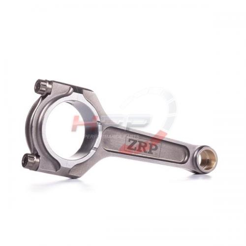 Kované ojnice od firmy ZRP se vyznačují perfektní kvalitou a přesností. Ojnice procházejí dodatečnými obráběcími procesy. Postranní žebrování minimalizuje kroucení ojnice a také redukuje její váhu. Pouzdra disponují radiální drážkou a jsou vyrobena ze slitin hliníku, bronzu a silikonu. Spojovací rukávy zaručují perfektní přesnost při montáži a opětovné použití. Drážkování v opěrných bodech poskytuje redukci váhy. Ojnice procházejí několika technickými kroky. Brokování zaručuje delší životnost. Magnaflux zaručuje kontrolu konzistence kovaného materiálu, který musí splňovat vysoký standard. Několika stupňový žárovací proces zaručuje vysokou pevnost, rozměrovou stálost a eliminuje únavu materiálu. Obrábění na CNC strojích zaručuje vynikající toleranci a přesnost 0.0003". Optimální vyvážení celé sady (+/- 1g). Přesnost osové vzdálenosti s tolerancí 001". Počítačová analýza Finite Element Analysis (FEA) odhaluje možné napětí. Šrouby ARP 2000 jsou rezistentní do upínací síly až 220.000psi, ARP L-19 pak až do síly 260.000/270.000psi. Kombinované testy prokázaly výdrž ojnic přes 700PS+ s použitím šroubů ARP 2000, se šrouby L-19 přes 800PS+ u 4-válcového motoru a 1000PS+ u 6-válcového motoru. Ojnice jsou dodávány s lubrikantem ARP moly a montážními instrukcemi.