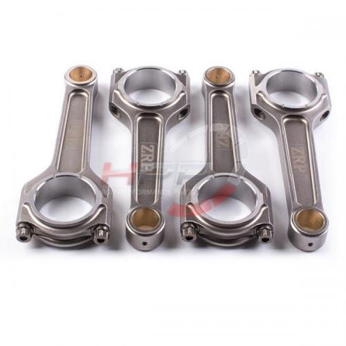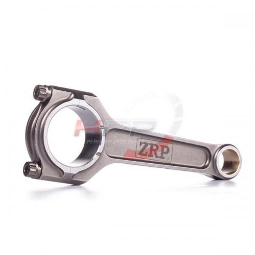 Kované ojnice od firmy ZRP se vyznačují perfektní kvalitou a přesností. Ojnice procházejí dodatečnými obráběcími procesy. Postranní žebrování minimalizuje kroucení ojnice a také redukuje její váhu. Pouzdra disponují radiální drážkou a jsou vyrobena ze slitin hliníku, bronzu a silikonu. Spojovací rukávy zaručují perfektní přesnost při montáži a opětovné použití. Drážkování v opěrných bodech poskytuje redukci váhy. Ojnice procházejí několika technickými kroky. Brokování zaručuje delší životnost. Magnaflux zaručuje kontrolu konzistence kovaného materiálu, který musí splňovat vysoký standard. Několika stupňový žárovací proces zaručuje vysokou pevnost, rozměrovou stálost a eliminuje únavu materiálu. Obrábění na CNC strojích zaručuje vynikající toleranci a přesnost 0.0003". Optimální vyvážení celé sady (+/- 1g). Přesnost osové vzdálenosti s tolerancí 001". Počítačová analýza Finite Element Analysis (FEA) odhaluje možné napětí. Šrouby ARP 2000 jsou rezistentní do upínací síly až 220.000psi, ARP L-19 pak až do síly 260.000/270.000psi. Kombinované testy prokázaly výdrž ojnic přes 700PS+ s použitím šroubů ARP 2000, se šrouby L-19 přes 800PS+ u 4-válcového motoru a 1000PS+ u 6-válcového motoru. Ojnice jsou dodávány s lubrikantem ARP moly a montážními instrukcemi.