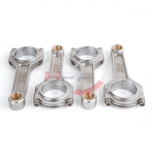 Kované ojnice od firmy ZRP se vyznačují perfektní kvalitou a přesností. Ojnice procházejí dodatečnými obráběcími procesy. Postranní žebrování minimalizuje kroucení ojnice a také redukuje její váhu. Pouzdra disponují radiální drážkou a jsou vyrobena ze slitin hliníku, bronzu a silikonu. Spojovací rukávy zaručují perfektní přesnost při montáži a opětovné použití. Drážkování v opěrných bodech poskytuje redukci váhy. Ojnice procházejí několika technickými kroky. Brokování zaručuje delší životnost. Magnaflux zaručuje kontrolu konzistence kovaného materiálu, který musí splňovat vysoký standard. Několika stupňový žárovací proces zaručuje vysokou pevnost, rozměrovou stálost a eliminuje únavu materiálu. Obrábění na CNC strojích zaručuje vynikající toleranci a přesnost 0.0003". Optimální vyvážení celé sady (+/- 1g). Přesnost osové vzdálenosti s tolerancí 001". Počítačová analýza Finite Element Analysis (FEA) odhaluje možné napětí. Šrouby ARP 2000 jsou rezistentní do upínací síly až 220.000psi, ARP L-19 pak až do síly 260.000/270.000psi. Kombinované testy prokázaly výdrž ojnic přes 700PS+ s použitím šroubů ARP 2000, se šrouby L-19 přes 800PS+ u 4-válcového motoru a 1000PS+ u 6-válcového motoru. Ojnice jsou dodávány s lubrikantem ARP moly a montážními instrukcemi.