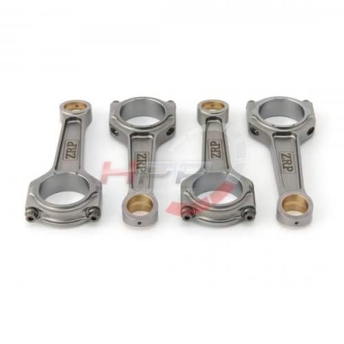 Kované ojnice od firmy ZRP se vyznačují perfektní kvalitou a přesností. Ojnice procházejí dodatečnými obráběcími procesy. Postranní žebrování minimalizuje kroucení ojnice a také redukuje její váhu. Pouzdra disponují radiální drážkou a jsou vyrobena ze slitin hliníku, bronzu a silikonu. Spojovací rukávy zaručují perfektní přesnost při montáži a opětovné použití. Drážkování v opěrných bodech poskytuje redukci váhy. Ojnice procházejí několika technickými kroky. Brokování zaručuje delší životnost. Magnaflux zaručuje kontrolu konzistence kovaného materiálu, který musí splňovat vysoký standard. Několika stupňový žárovací proces zaručuje vysokou pevnost, rozměrovou stálost a eliminuje únavu materiálu. Obrábění na CNC strojích zaručuje vynikající toleranci a přesnost 0.0003". Optimální vyvážení celé sady (+/- 1g). Přesnost osové vzdálenosti s tolerancí 001". Počítačová analýza Finite Element Analysis (FEA) odhaluje možné napětí. Šrouby ARP 2000 jsou rezistentní do upínací síly až 220.000psi, ARP L-19 pak až do síly 260.000/270.000psi. Kombinované testy prokázaly výdrž ojnic přes 700PS+ s použitím šroubů ARP 2000, se šrouby L-19 přes 800PS+ u 4-válcového motoru a 1000PS+ u 6-válcového motoru. Ojnice jsou dodávány s lubrikantem ARP moly a montážními instrukcemi.