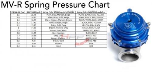 Tial MV-S wastegate: 0,6 bar (8.70 psi).