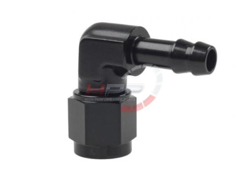 Redukční fitinka koleno 90° D-08 (AN8) 3/4"x16-UNF - 10mm hadice (3/8"). Závit 3/4"x16-UNF konvexní samice.
