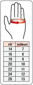Poznámka: správnou velikost rukavic změříte obvodem ruky, viz. obrázek.