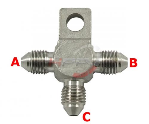 Téčko s výstupy 3x samec D-03 (AN3) 3/8"x24-UNF - nerezové (s držákem)Téčko s výstupy 3x samec D-03 (AN3) 3/8"x24-UNF - nerezové (s držákem)Téčko s výstupy 3x samec D-03 (AN3) 3/8"x24-UNF - nerezové (s držákem)