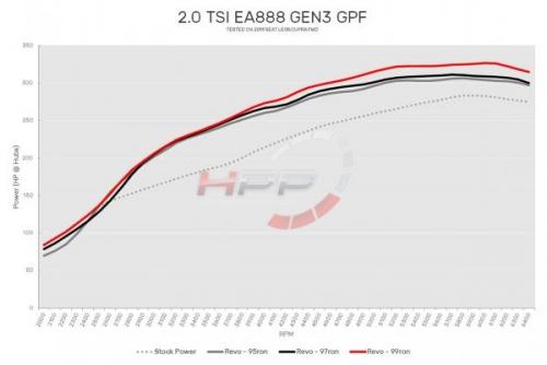 - Inovativní motor 2.0TSI umí být vcelku úsporný, ale když je potřeba, dodává velmi pěkný výkon v celém spektru otáček. Software Revo umožňuje těmto motorům dodatečný výkon a širší výkonové pásmo, aniž by ztrácel hladký chod nebo se zhoršila spotřeba. Zvýšení točivého momentu v celém rozsahu otáček poskytuje mnohem větší flexibilitu ve všech převodových stupních. Někteří zákazníci zaznamenali snížení spotřeby až o 10% po této úpravě.