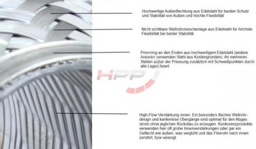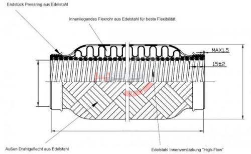 - Vnitřní vlnité zesílení pro zajištění maximální pevnosti a odpružení výfukové soustavy.