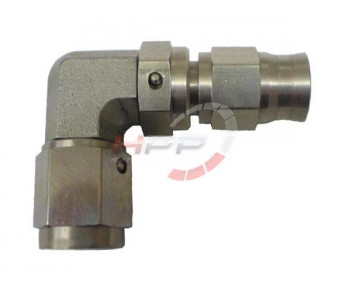 Zakončovací adaptér koleno 90° D-04 (AN4) 7/16"x20-UNF konkávní samice na hadici DASH-03 (AN3). Otočný o 360°.